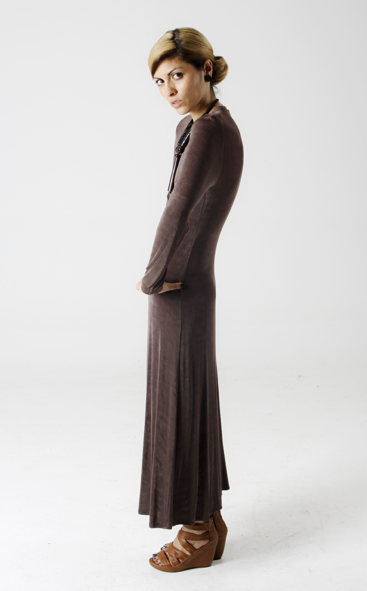 Silver Slate Maxi Dress. 3/4 Quarter Sleeves. Harper's Bazaar has declared this the new maxi. Not floor draping, but over the ankles and a perfect cut to flaunt your shoe game