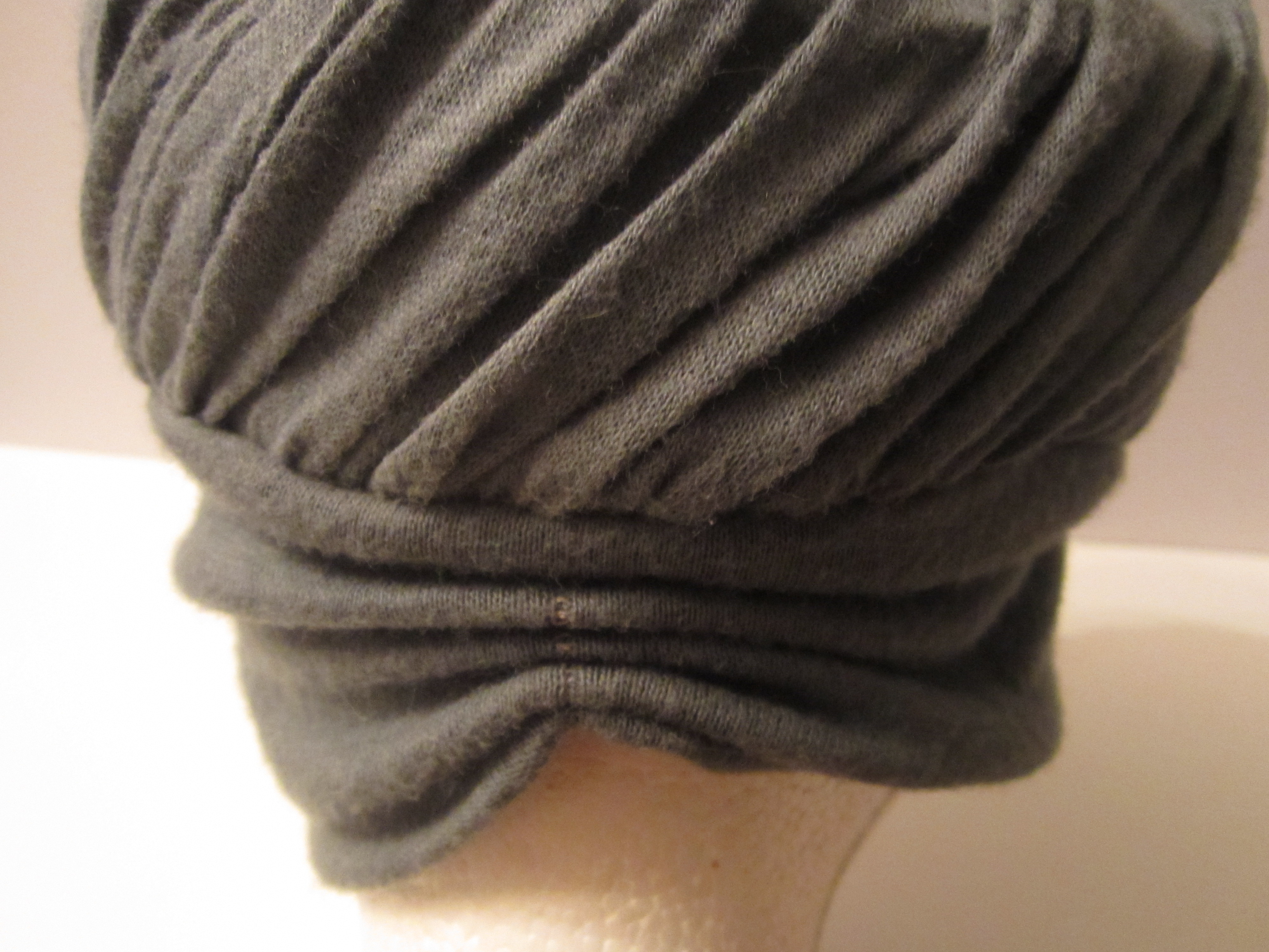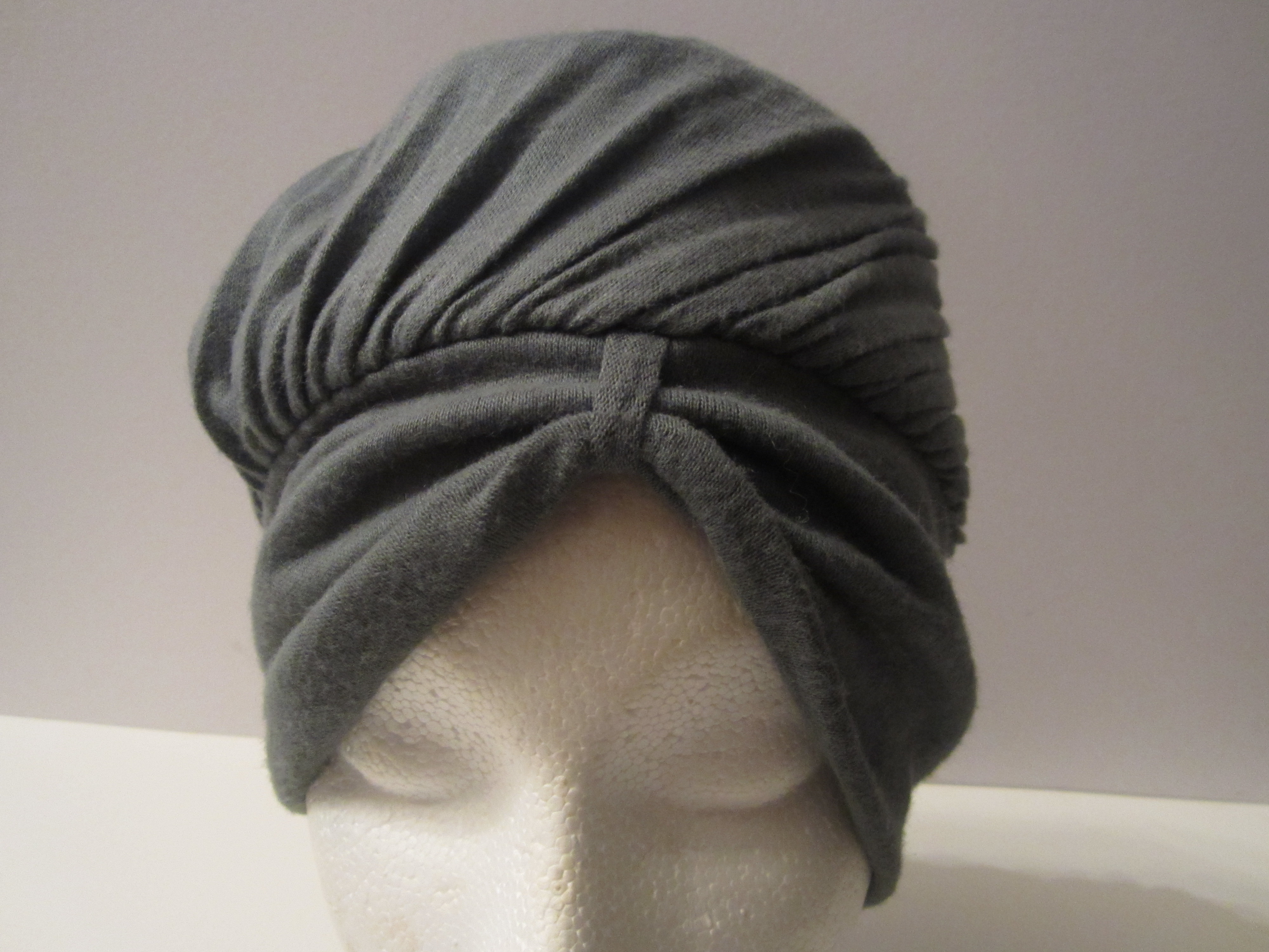 Beautifully shaped true 1920's turban in a midnight gray. The ruched design brings effortless style to everyday turbans that have made a come back- this one will set you apart.