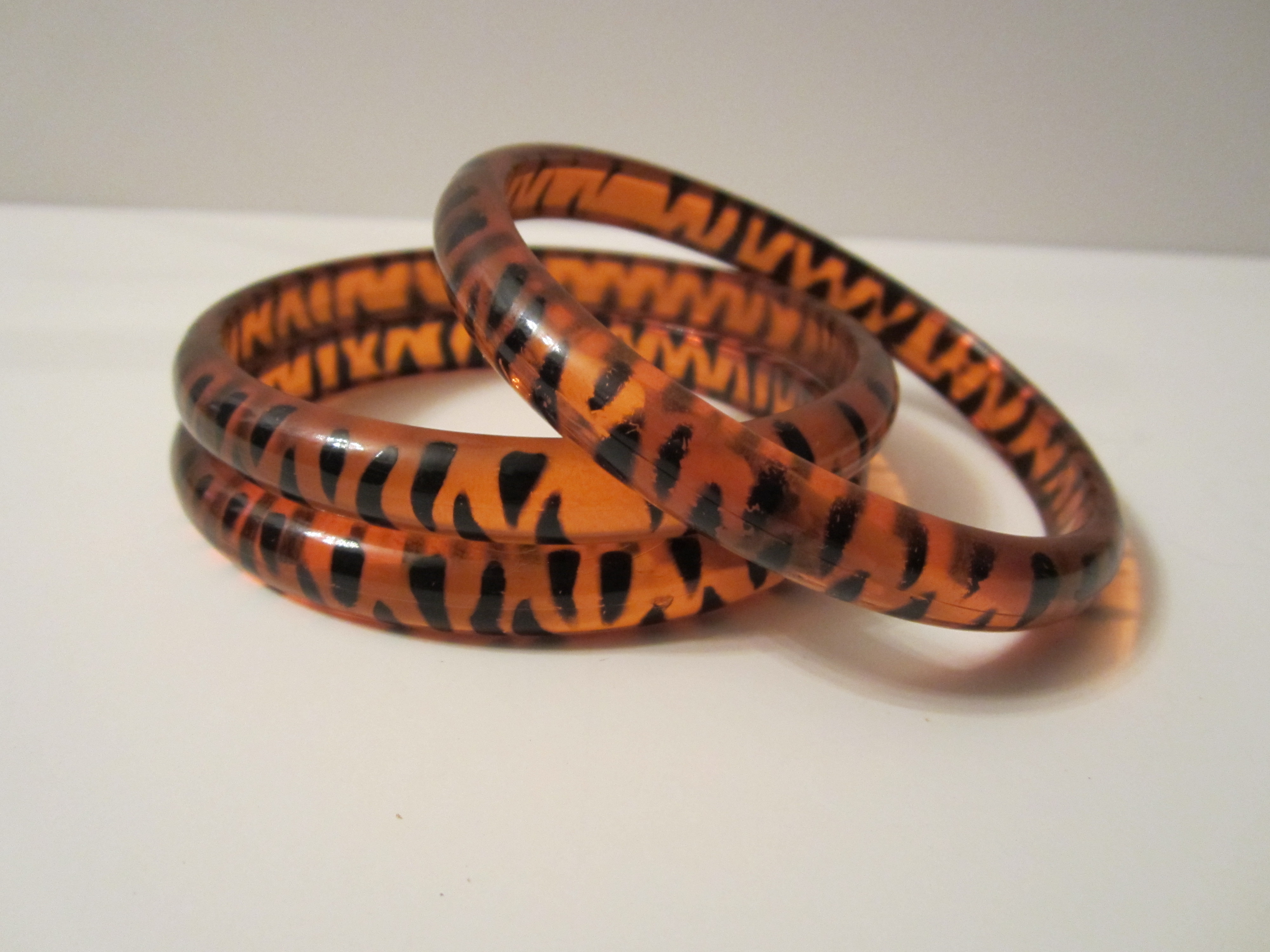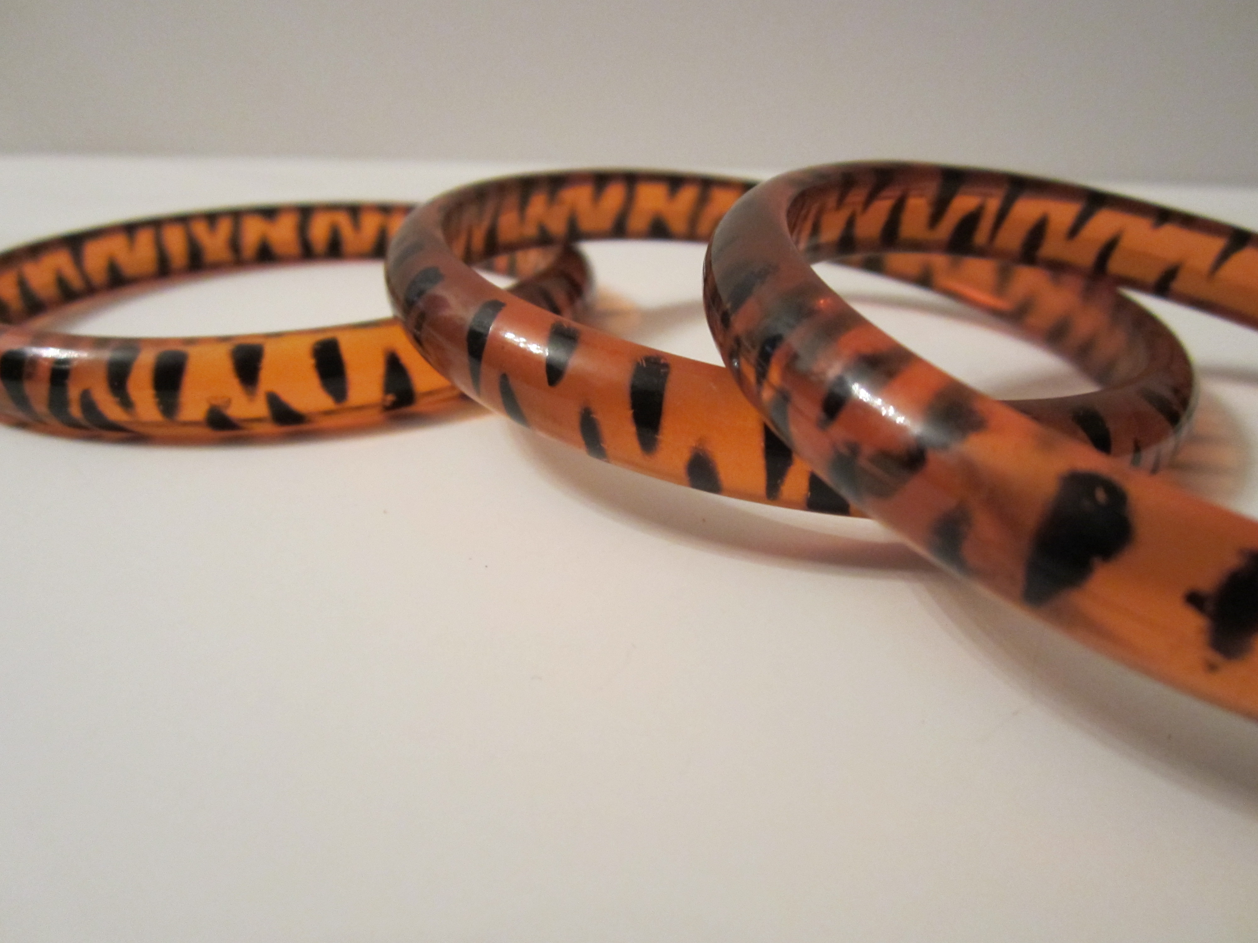 Set of 3 Bangles in Deep Amber with Tiger Print.