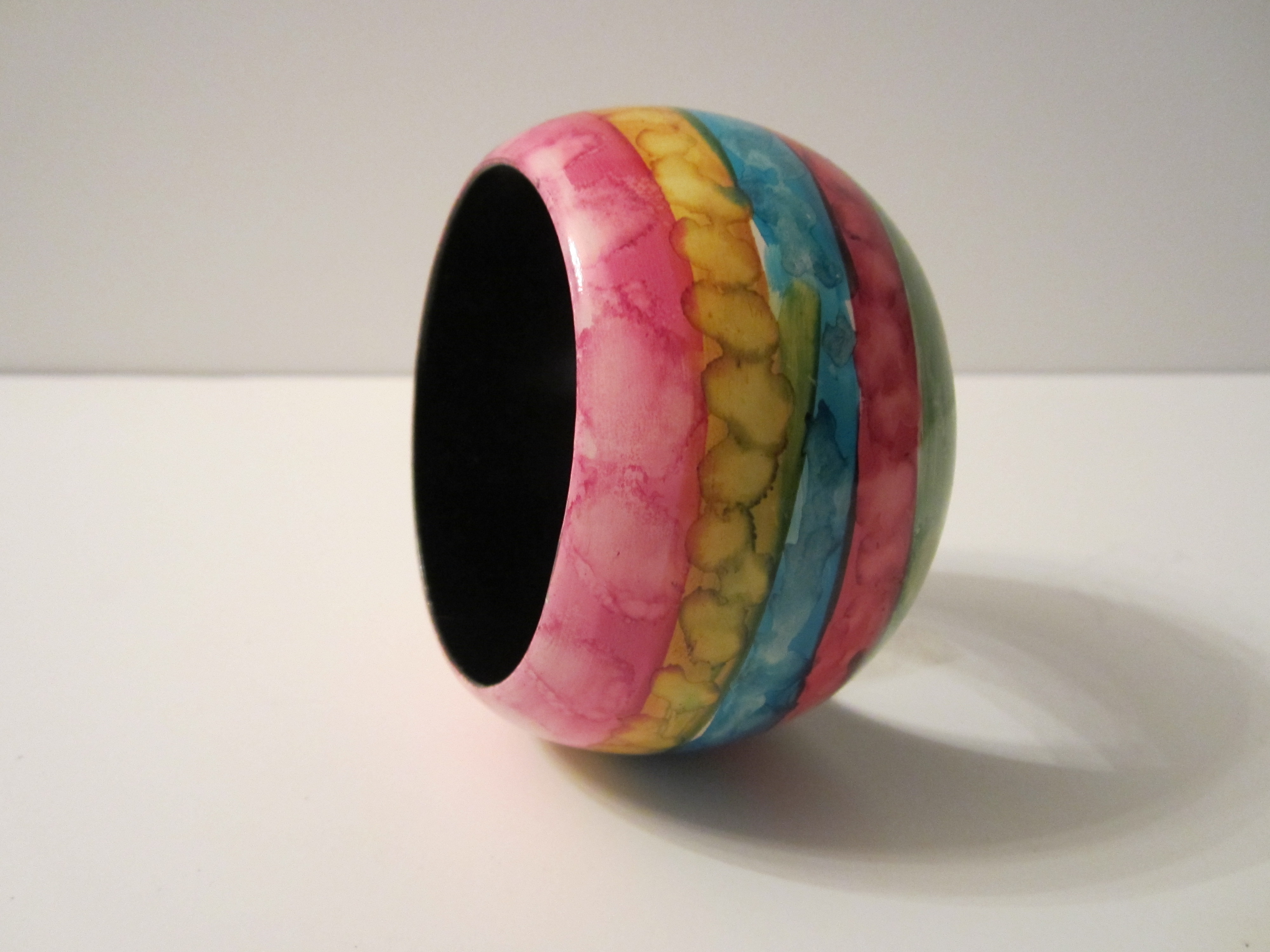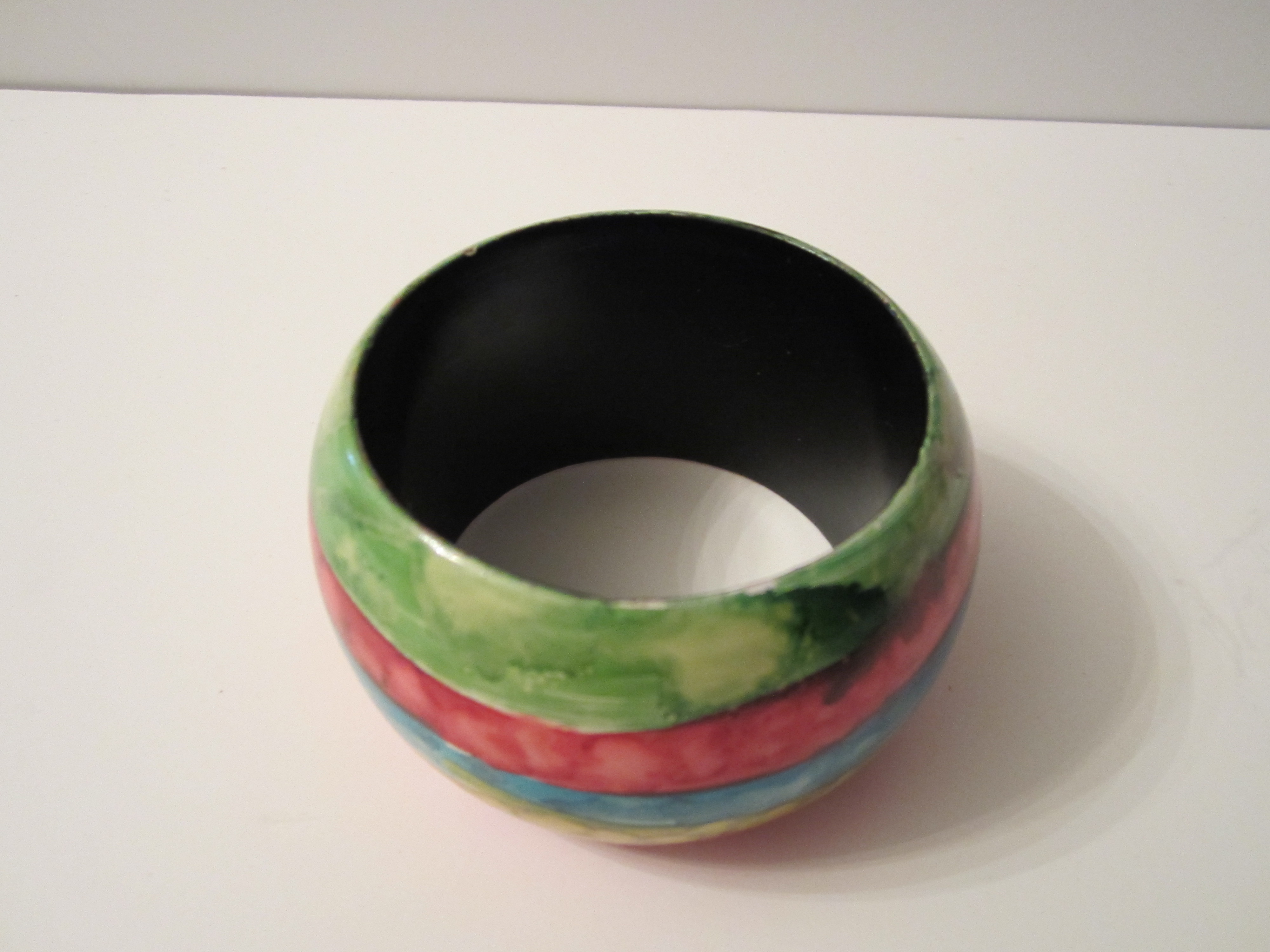 NEW Chunky Bangle with pink, yellow, blue, red, and green striped design. Handmade feature of unique strokes of color splotches throughout.