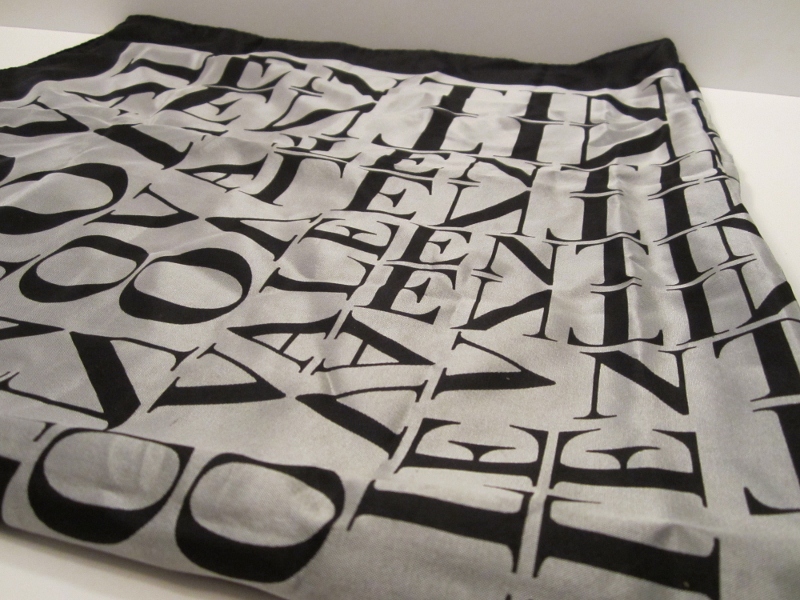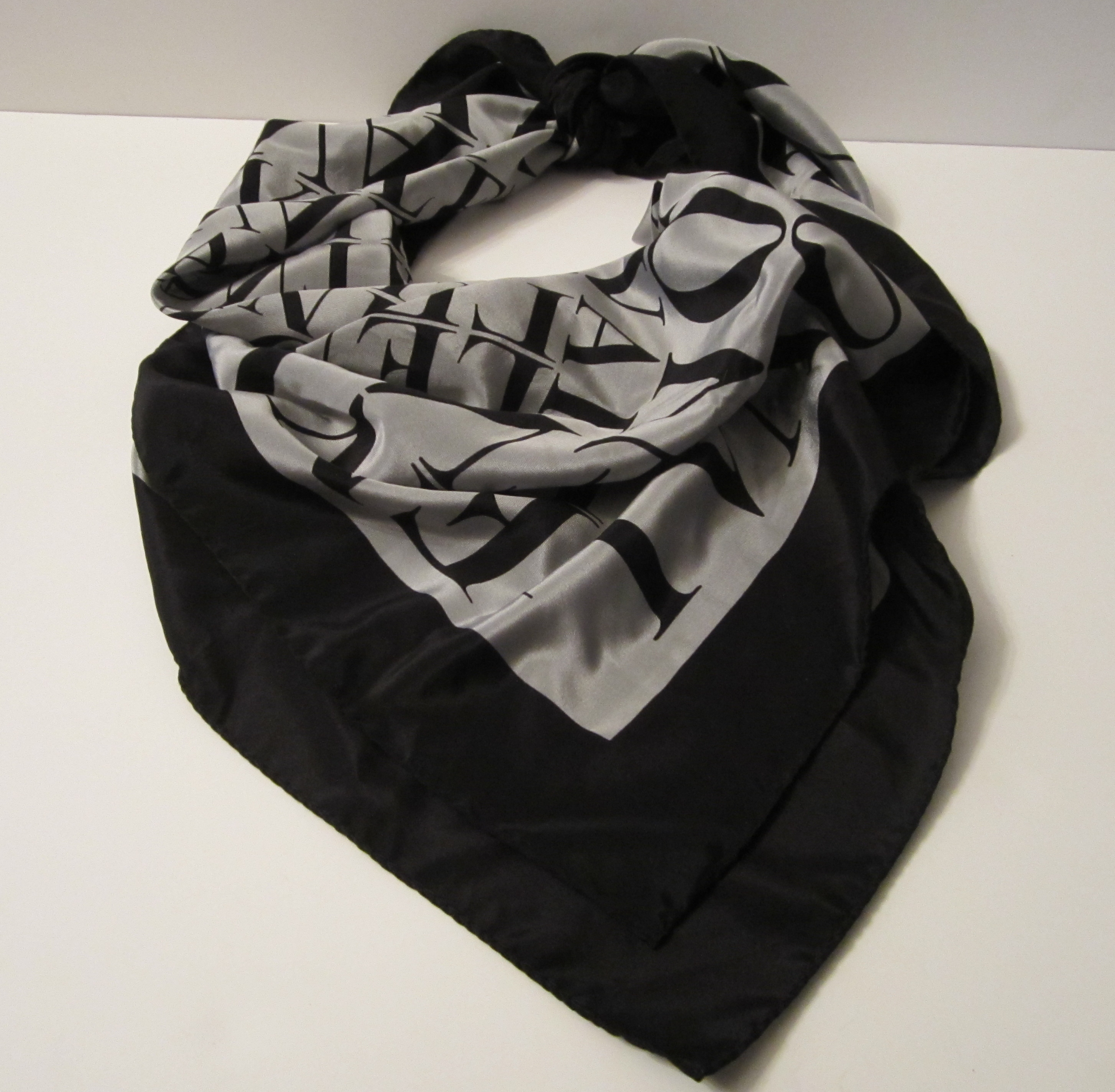 Colors: Black/Pewter Valentino Text Logo Design Made in Italy Size: 90 cm x 90 cm / 36" x 36" Large Square Scarf 100% Silk Authentic