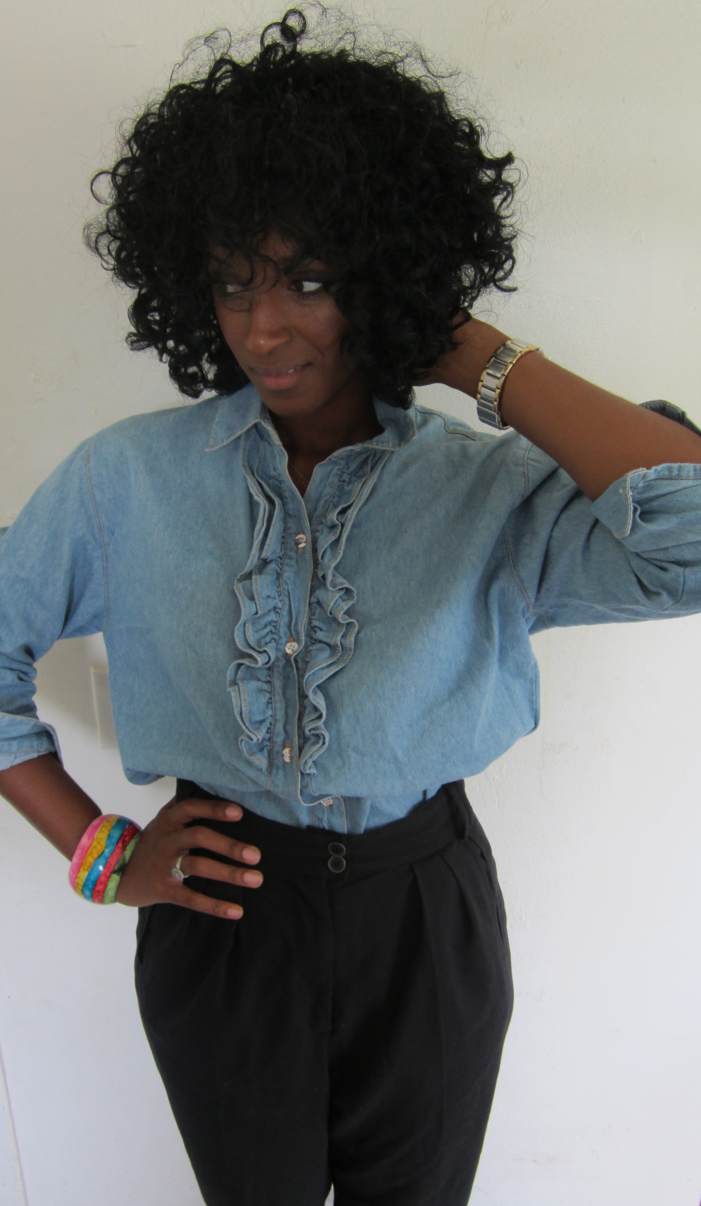 Perfect dress look for thedenim trend!! Delicate Cotton Collared Denim Shirt. Two ruffles on each side by button closure, rounded bottom