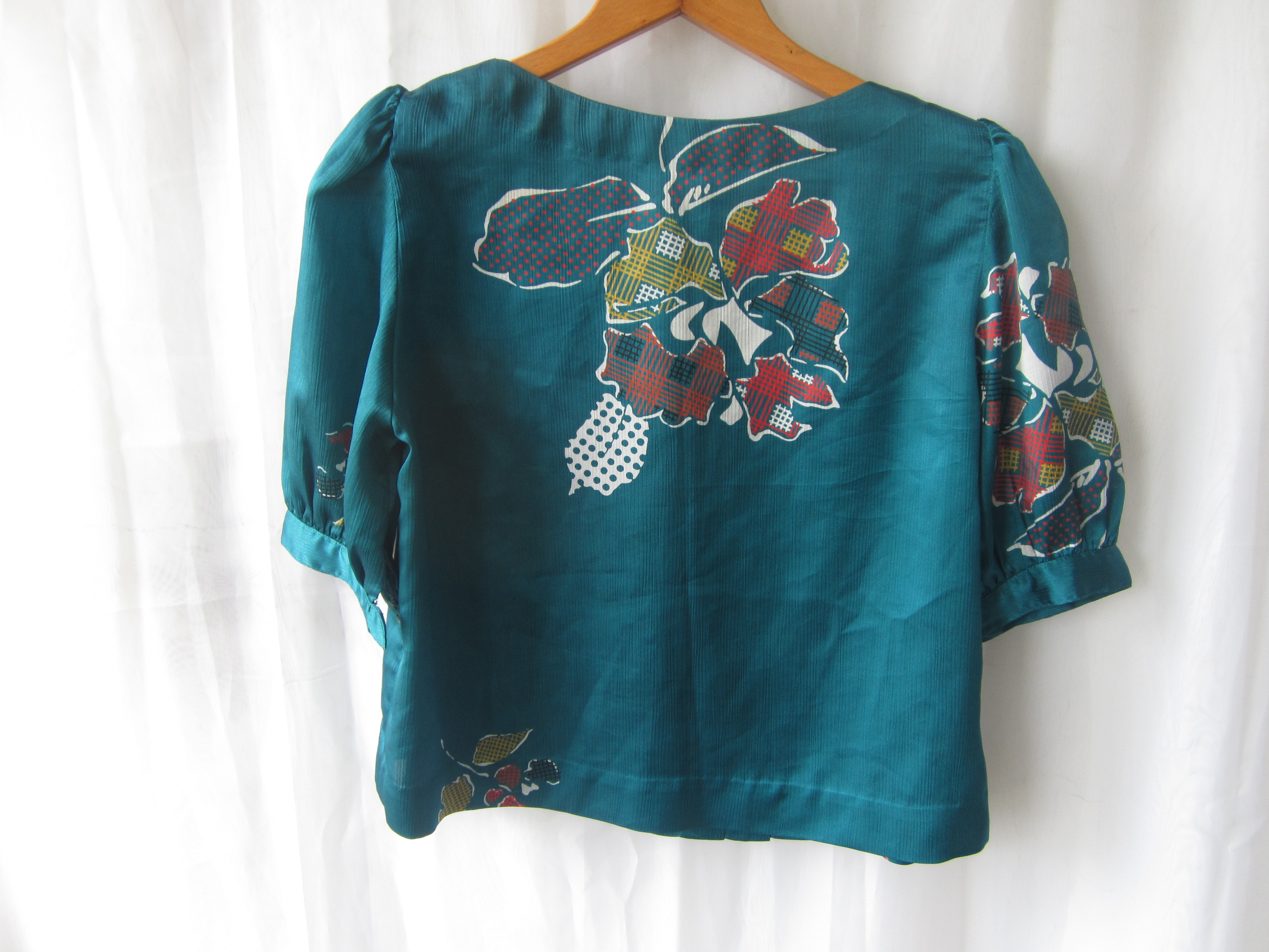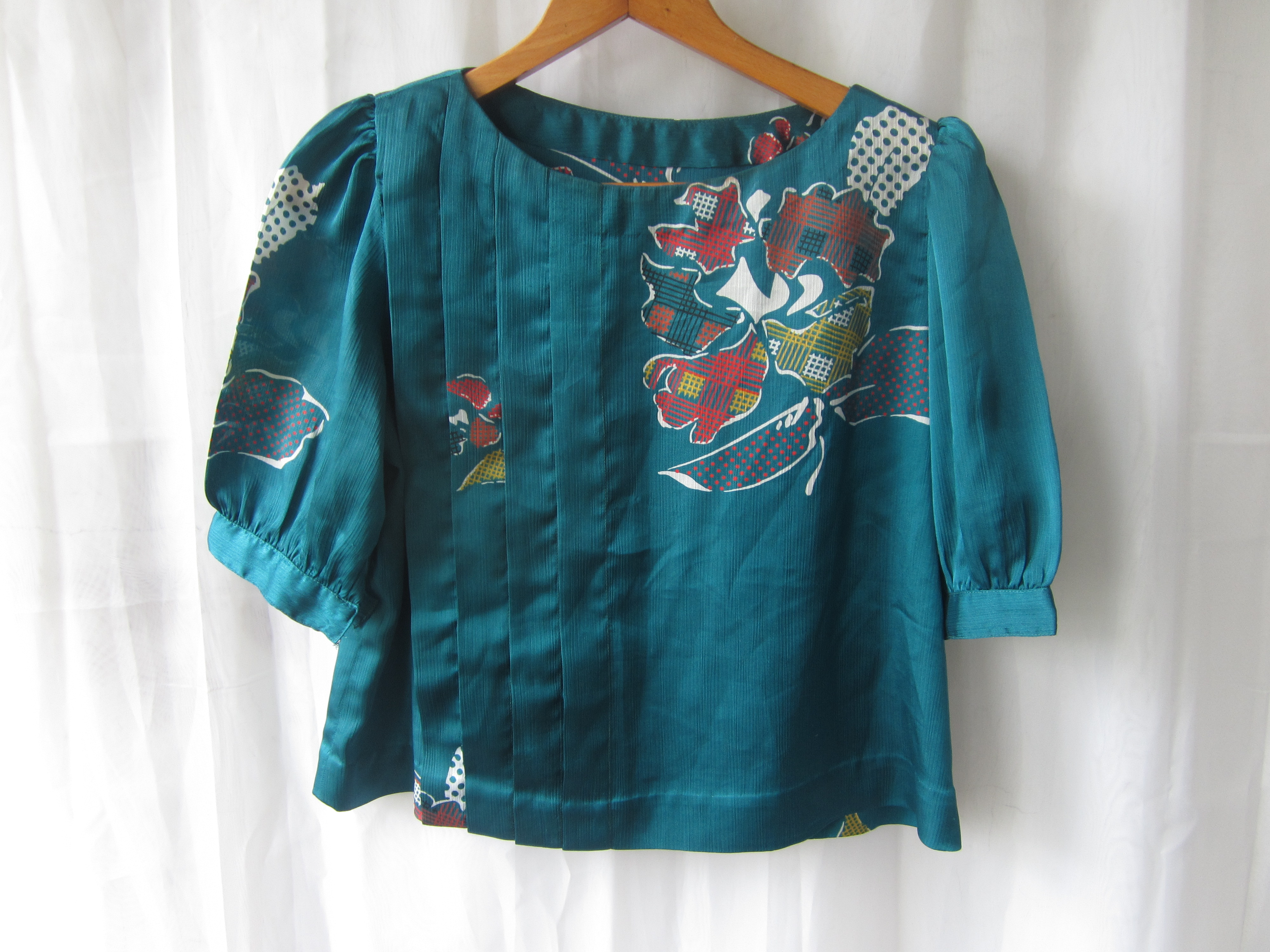 Intricate capped sleeves with clasps while sophisticated and soft pleats flow through the blouse on one side.