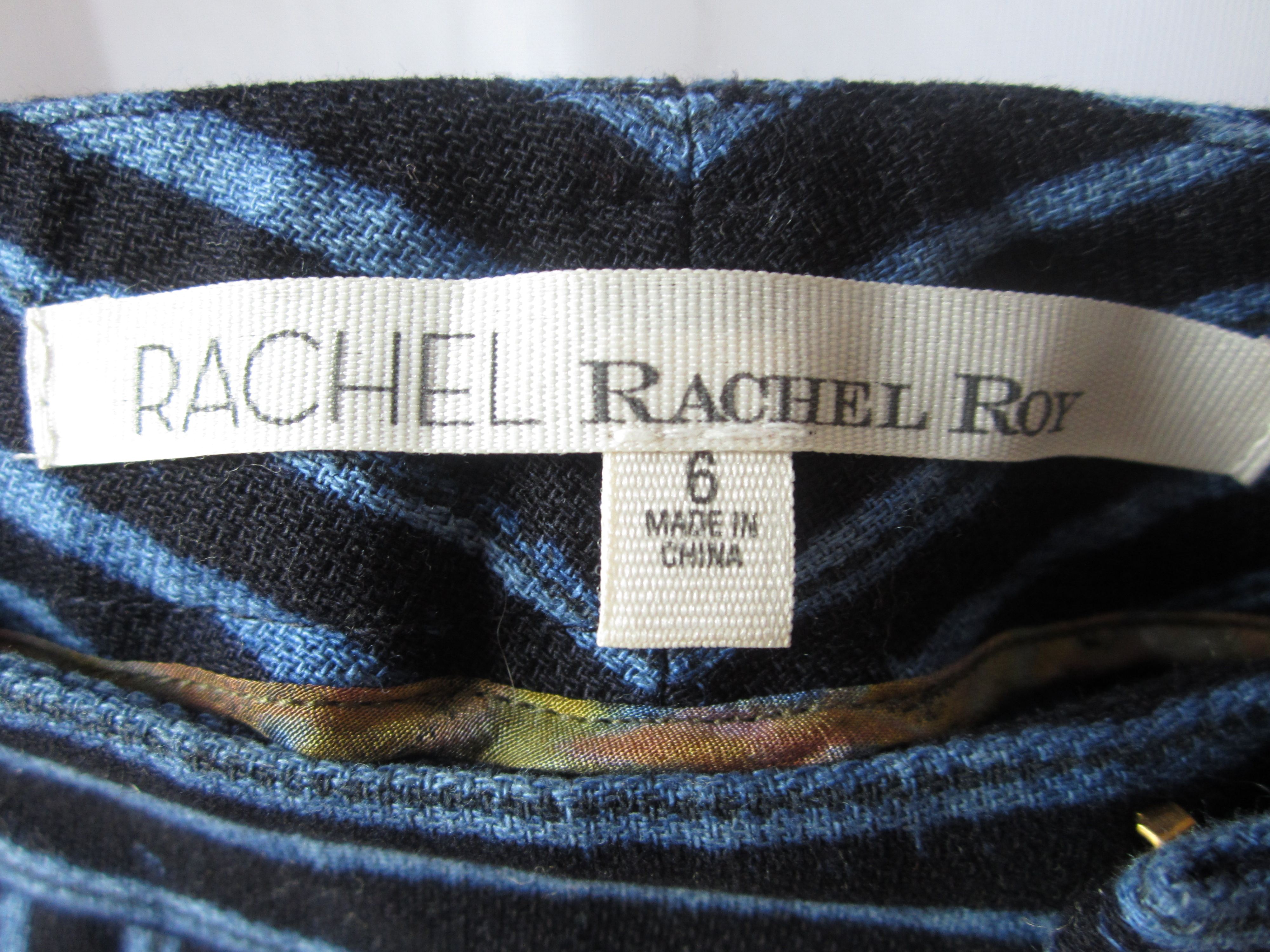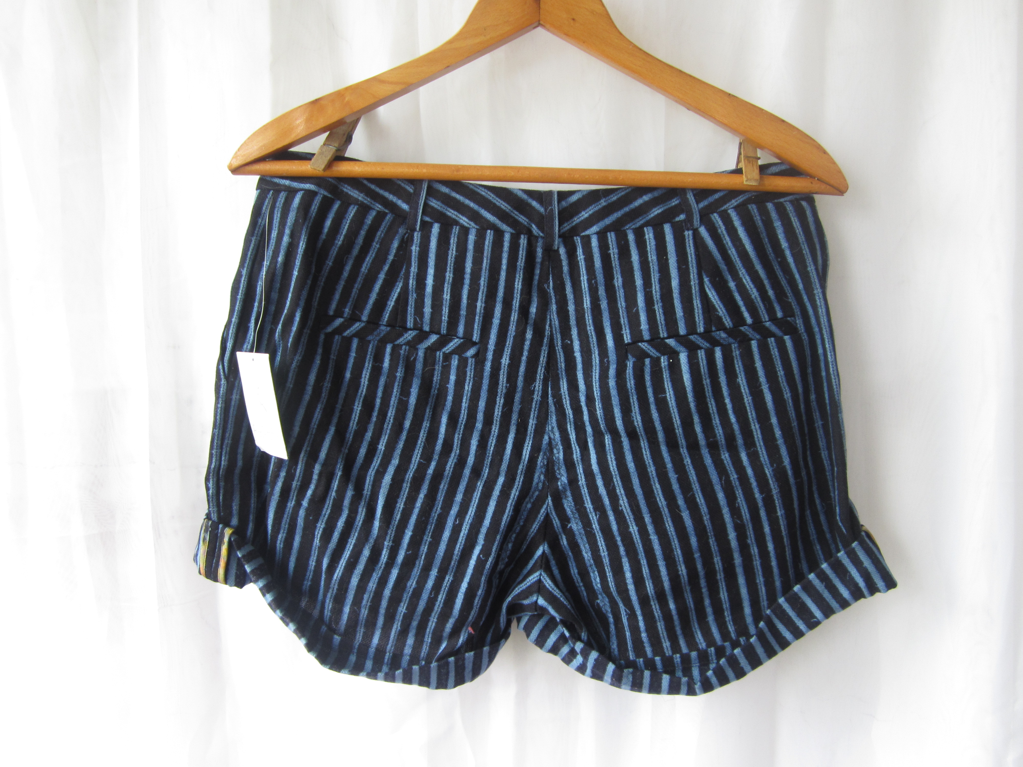 BRAND NEW WITH TAGS.. Rachel by Rachel Roy designer shorts. They are a bright aqua blue stripe set on deep navy ground. Cuffed with a burnt orange pattern on the side of cuff clasps. Super cute and another steal from Influene E-Tique.